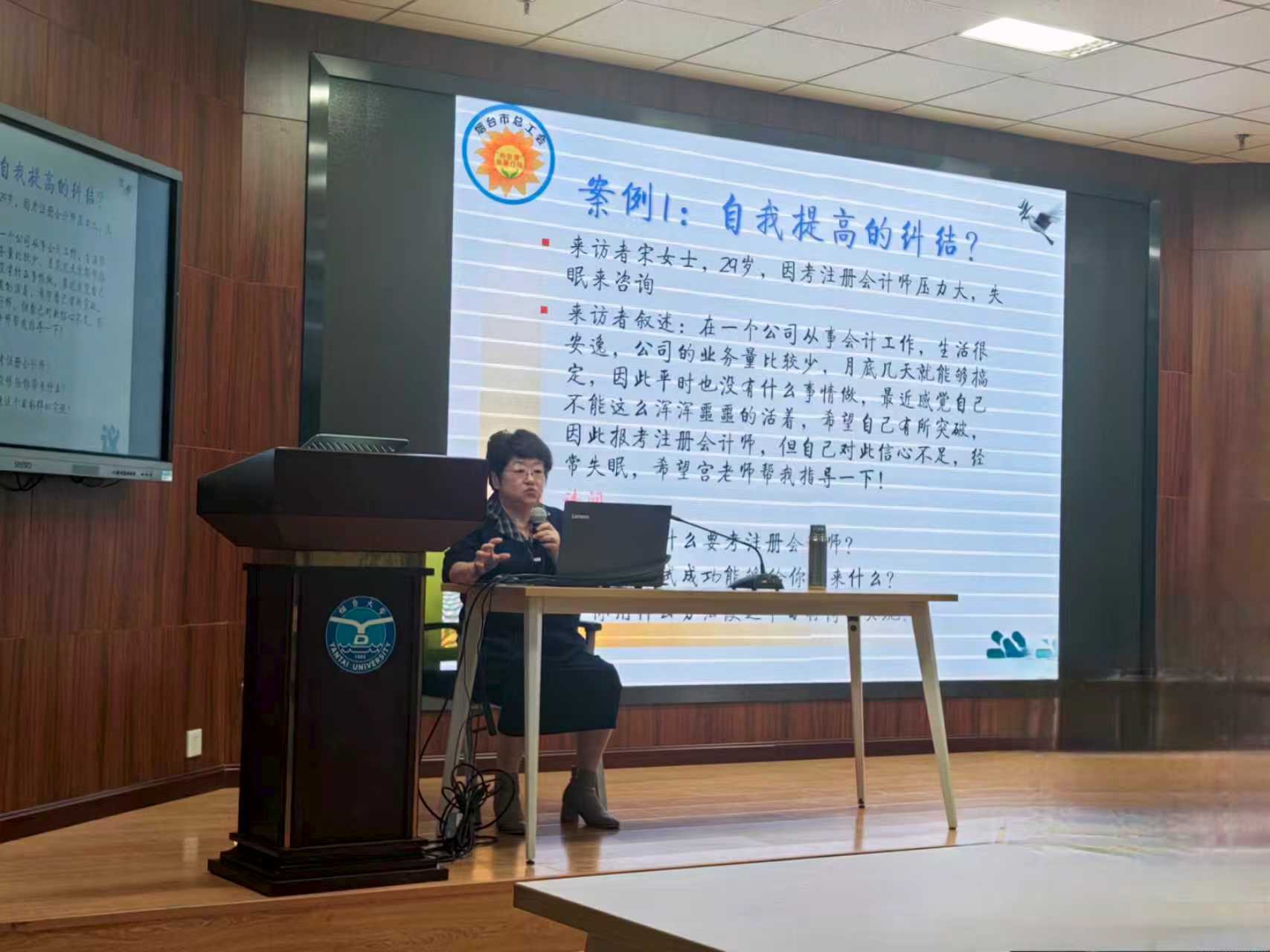 随后,烟台市总工会“向日葵”心理关爱专家团成员宫翠风为新会员作《成就卓越的自己》专题讲座。宫翠风从破冰游戏开始,通过案例展示与分析,对有效沟通的技巧、如何保持良好的心态、如何在职场中建立良好的人际关系等方面进行了深入浅出的讲解和分析。讲座过程中,教职工们认真聆听、积极互动。校工会将持续关注教职工心理健康,开展形式多样、内容丰富的心理健康教育活动,引导教职工以更加积极的心态和饱满的热情投入生活和工作中。