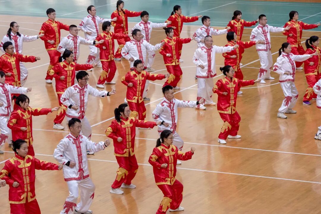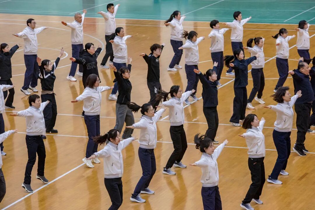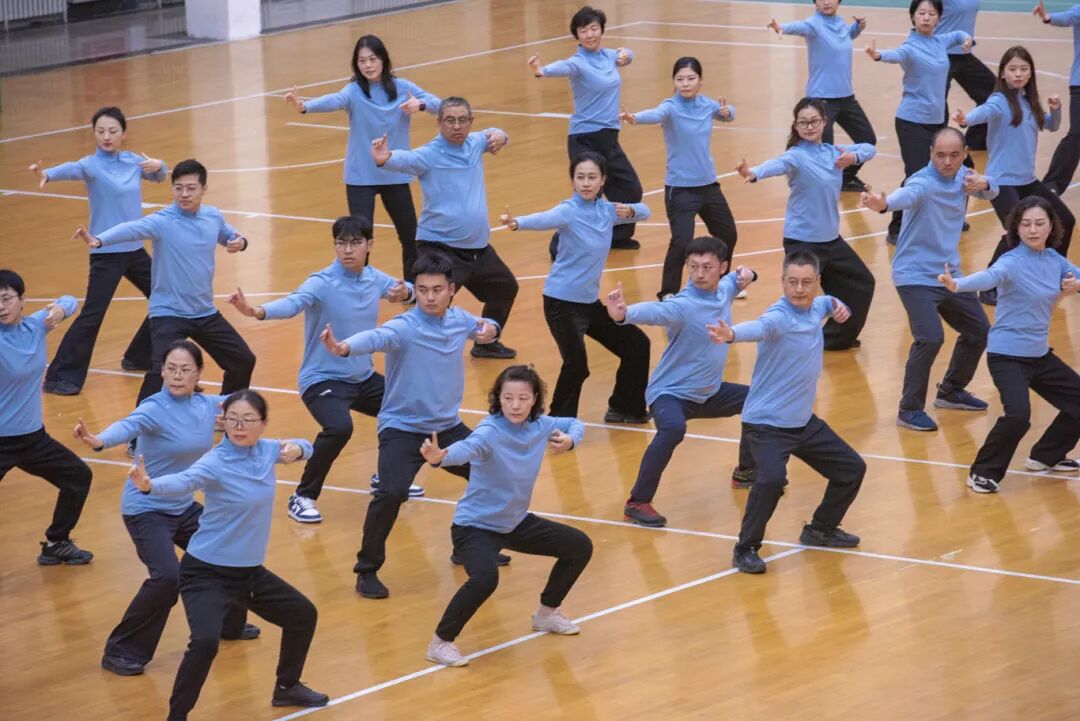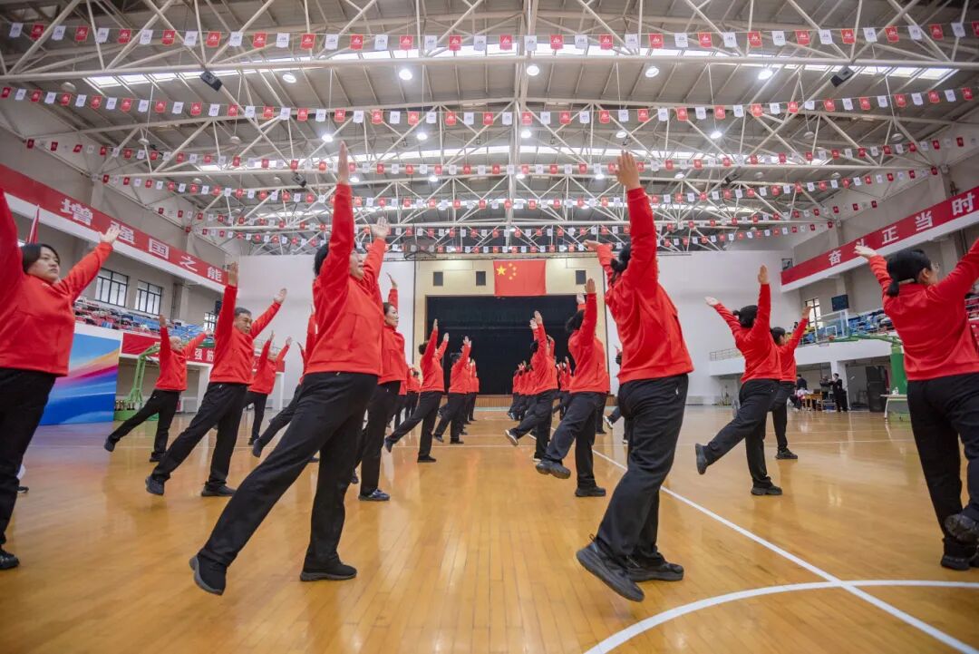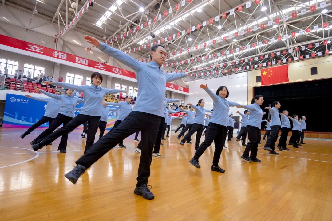 开幕式上,党委副书记白青宣布比赛开幕。伴随着悦动的音乐旋律,花球啦啦操表演燃动全场,展现了青年学子的青春活力。比赛现场气氛热烈,各代表队身着统一服装依次登场。本次大赛分为第九套广播体操和八段锦两个类别,参赛教职工精神饱满,动作规范整齐、娴熟流畅,队列整齐划一,成员间默契配合,每一个抬手、转身动作都利落标准,展现出广大教职工自信、自强的风采。评委组围绕“动作协调性”“精神面貌”“整体表现力”的核心维度进行综合打分,全程严守评审准则。