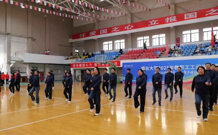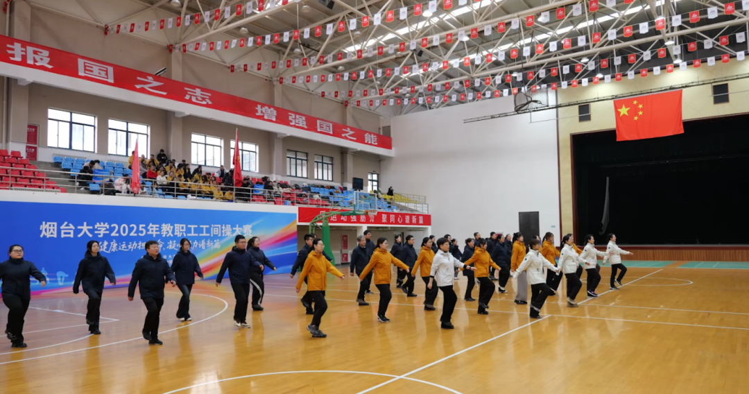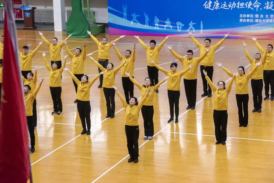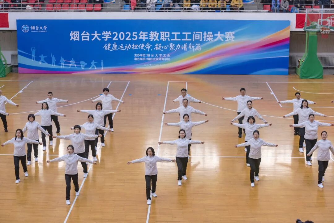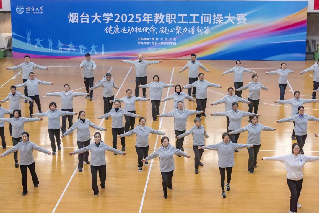 健康运动担使命,凝心聚力谱新篇。11月29日,由校工会主办、体育学院承办的2025年教职工工间操大赛在大学生活动中心燃情开赛。来自全校26个基层工会的17支代表队、900余名教职工参与比赛。党委副书记白青,党委常委、副校长姚昌,党委常委、纪委书记、山东省监察委员会驻烟台大学监察专员刘伟,副校长王洪波出席活动并为获奖单位颁奖。