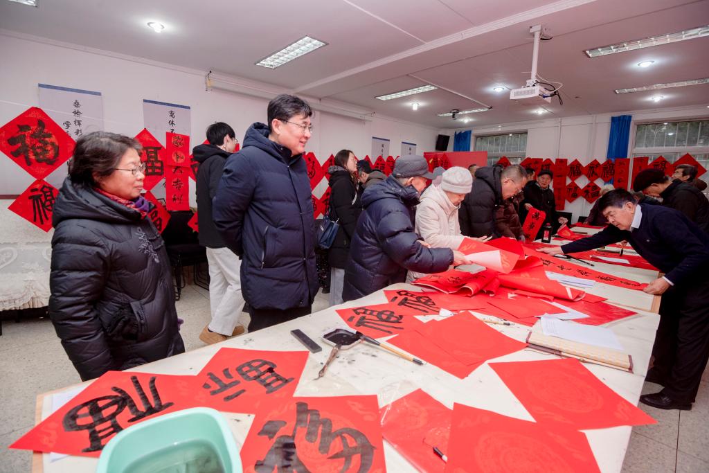 为弘扬中华优秀传统文化,喜迎丙午马年的到来,1月16日下午,校工会在离退休党群服务中心举办“迎新春,送春联”活动。活动由教职工书法美术家协会承办、离退休工作处工会协办。